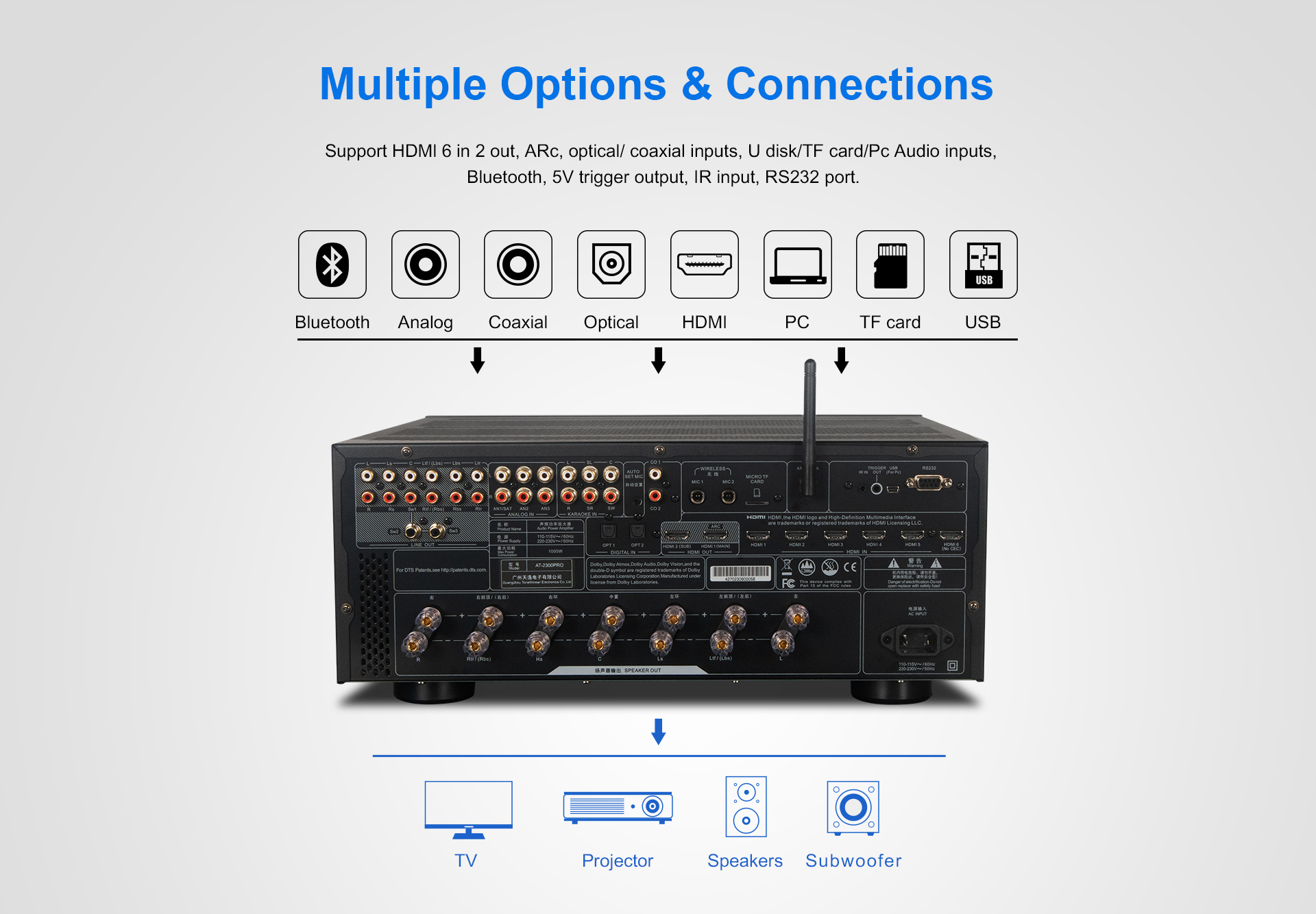 कम ऊर्जा खपत और अधिक टिकाऊपन: स्थिर स्थितियों में एम्पलीफायर बहुत कम बिजली का उपयोग करता है, जिससे समय के साथ ऊर्जा की बचत होती है। कम गर्मी एम्पलीफायर और स्पीकर के जल्दी खराब होने की प्रक्रिया को धीमा कर देती है। यह असमान बिजली आपूर्ति से होने वाले नुकसान को भी रोकता है, जिससे आपका होम थिएटर सिस्टम लंबे समय तक चलता है।