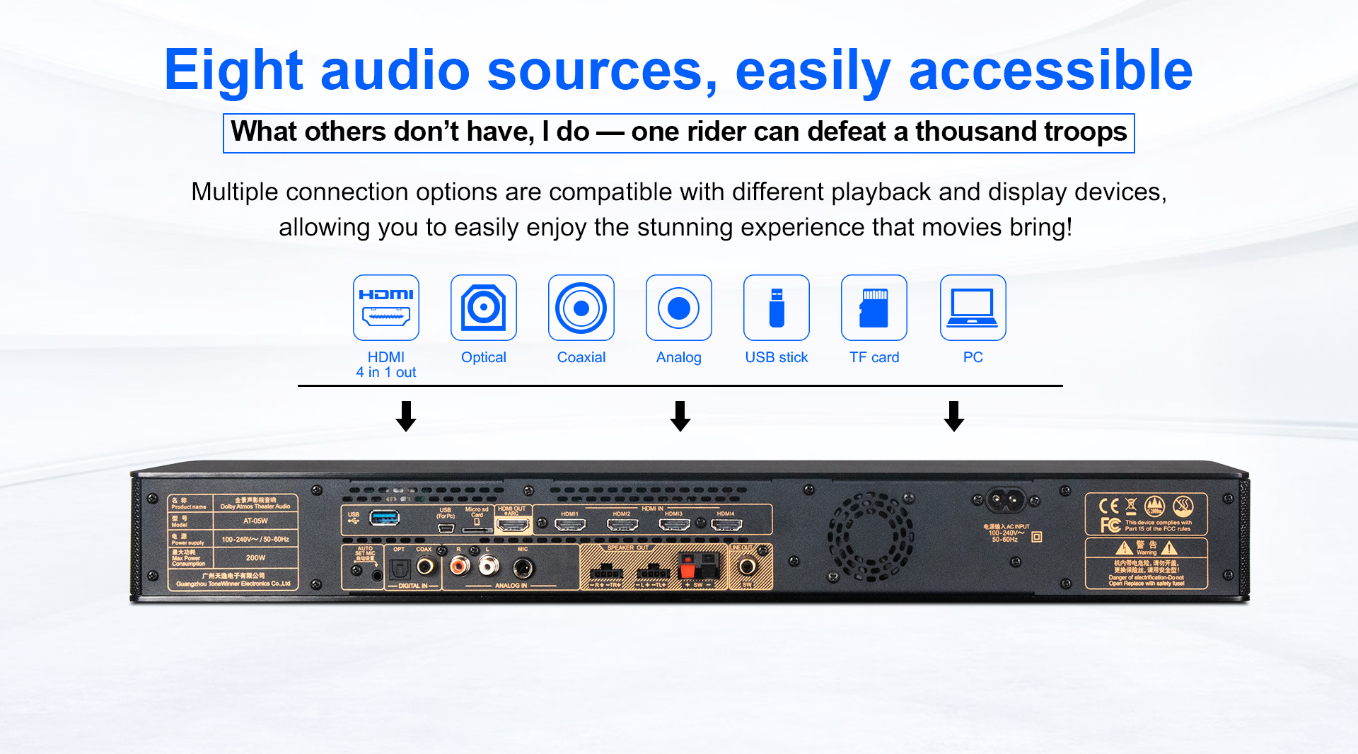 यह डॉल्बी एटमॉस सराउंड साउंड, प्रोफेशनल केटीवी, हाई-फाई म्यूजिक और गेमिंग अनुभवों को एक साथ जोड़ता है।