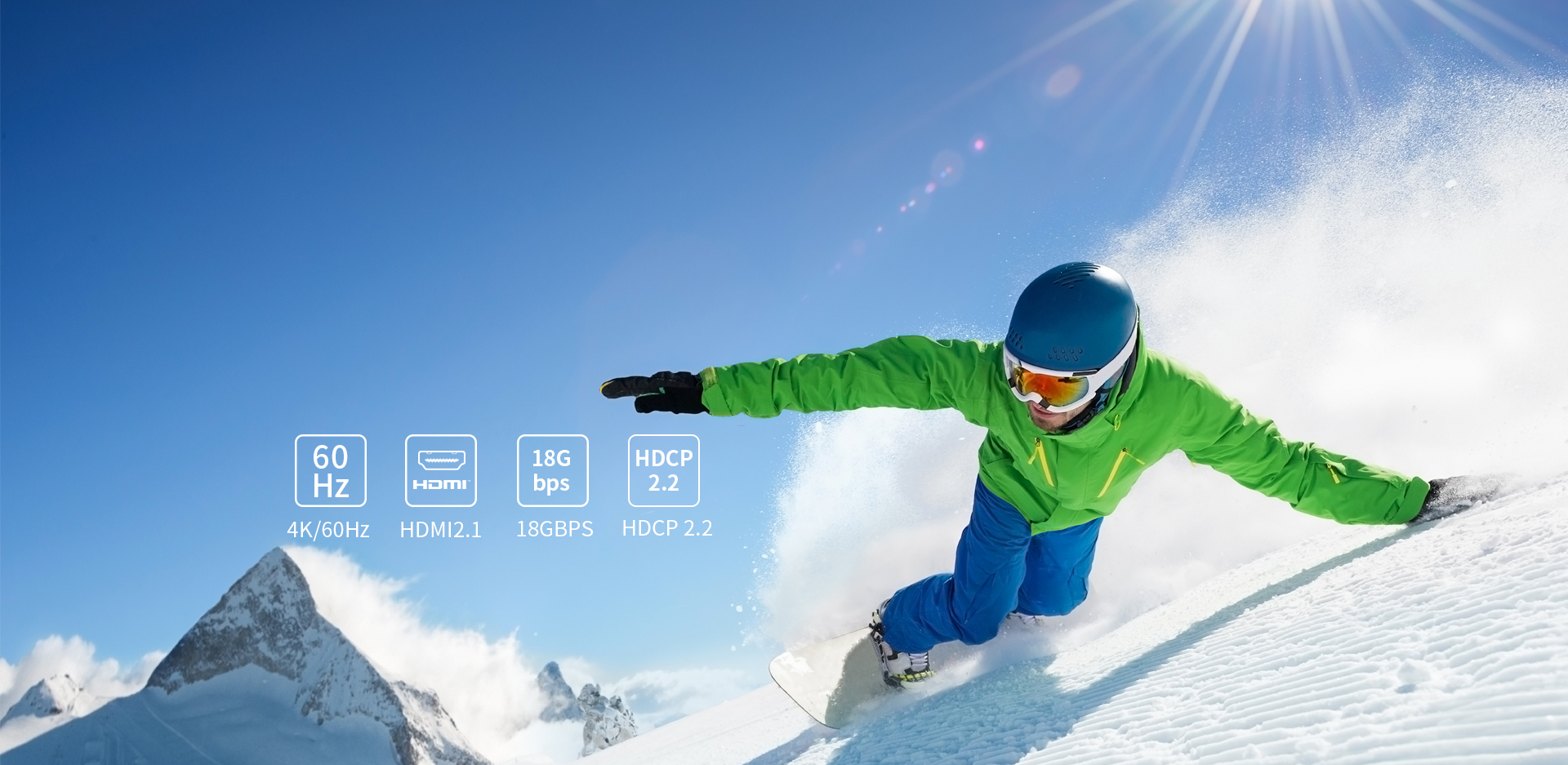 18G बैंडविड्थ तक, 3840*2160 4K हाई-डेफिनिशन वीडियो पिक्सल पारंपरिक 1080P पूर्ण हाई-डेफिनिशन के चार गुना हैं, RGB4:4:4 तकनीक के माध्यम से, छवि कंट्रास्ट और चमक में काफी सुधार हुआ है, फिल्मों और खेलों में ध्वनि की गुणवत्ता और छवि गुणवत्ता की क्षमता को बेहतर ढंग से जारी किया गया है।