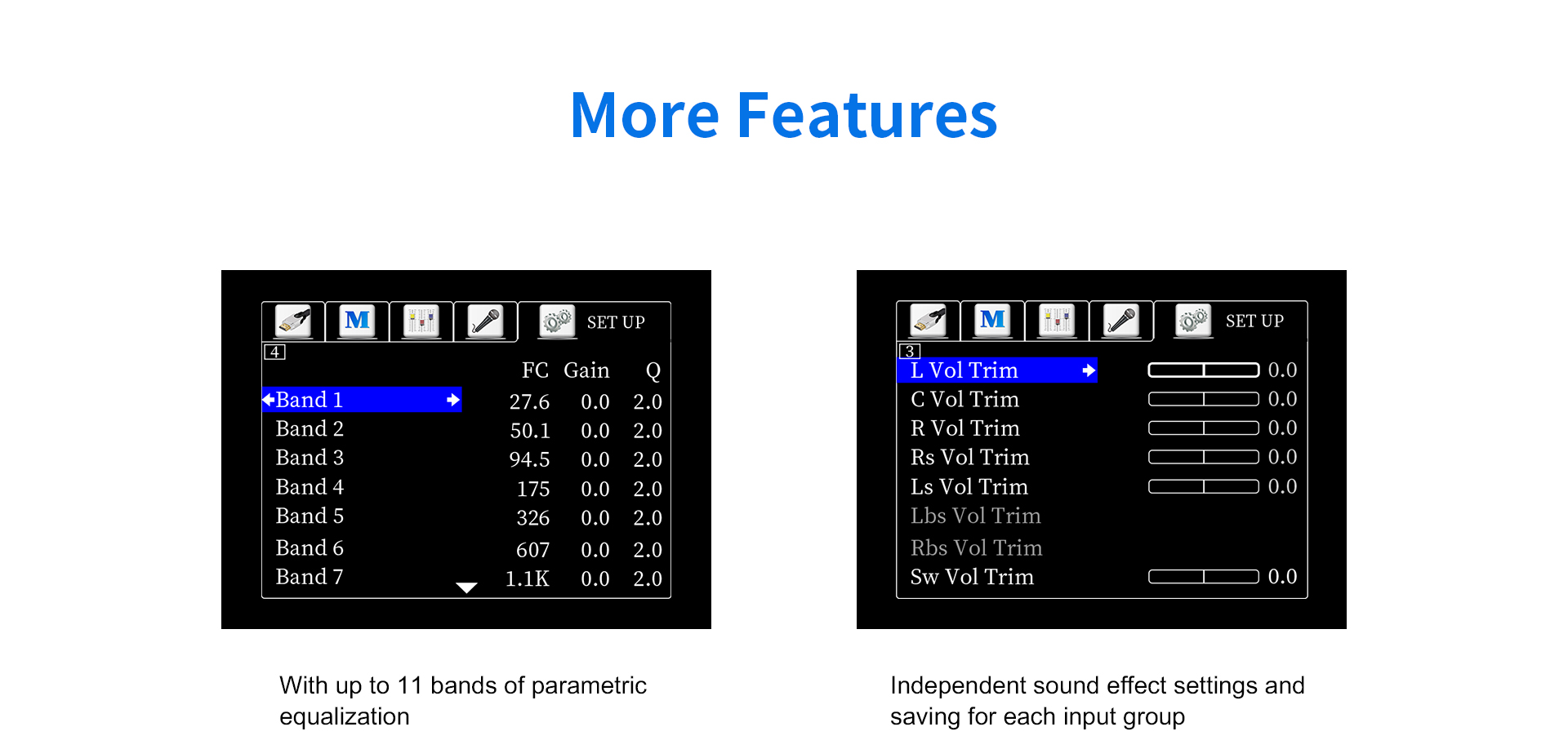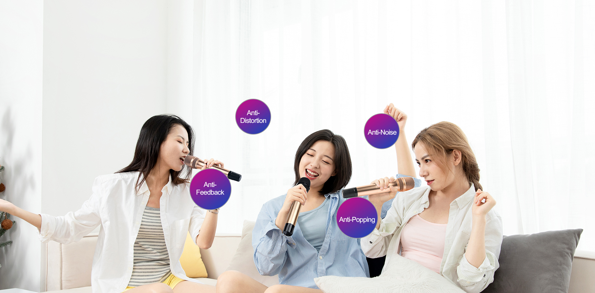 विभिन्न व्यावसायिक कराओके ध्वनि प्रभावों के साथ पूर्व-सेट, एक सर्वव्यापी त्रि-आयामी संगीत स्थान, जो आपको मिनटों में एक व्यक्तिगत संगीत कार्यक्रम का आनंद अनुभव करने की अनुमति देता है।