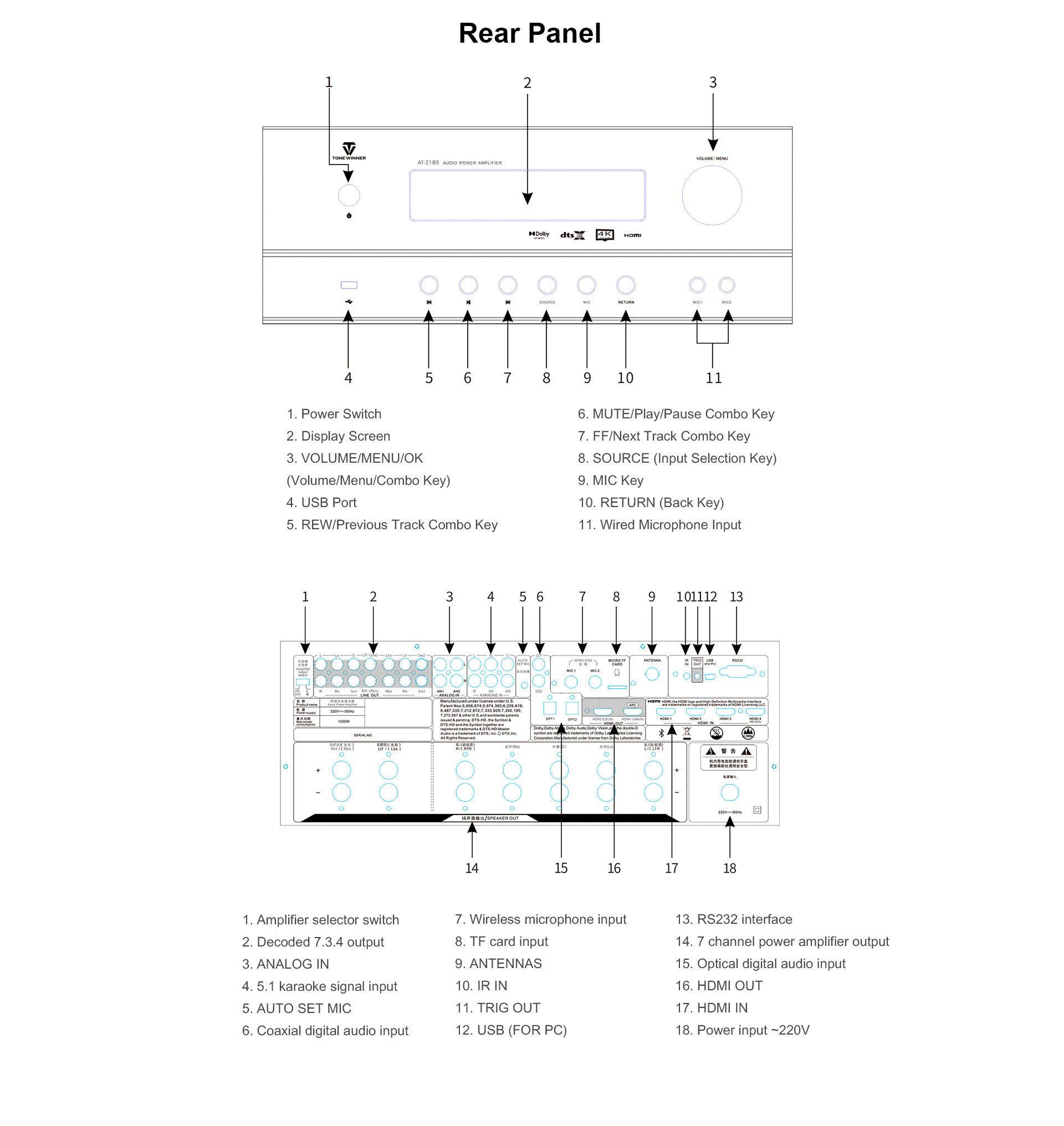 AT-2180 एक पेशेवर 7-चैनल होम थिएटर AV प्रोसेसर है जो डॉल्बी एटमॉस, DTS:X और स्मार्टफोन ऐप कंट्रोल सहित नवीनतम इमर्सिव ऑडियो फ़ॉर्मेट को सपोर्ट करता है। इसमें ढेर सारे इनपुट और आउटपुट पोर्ट हैं।