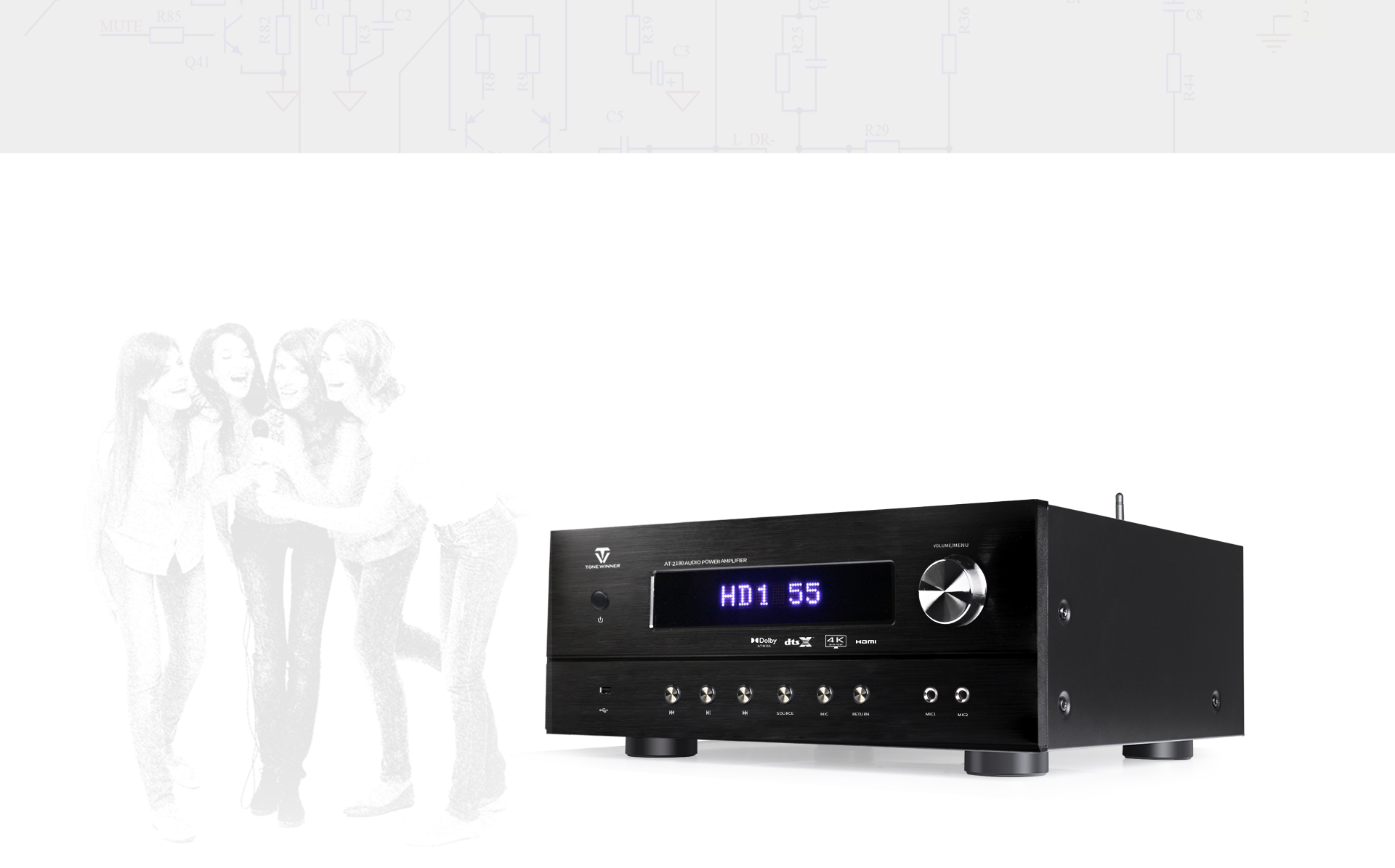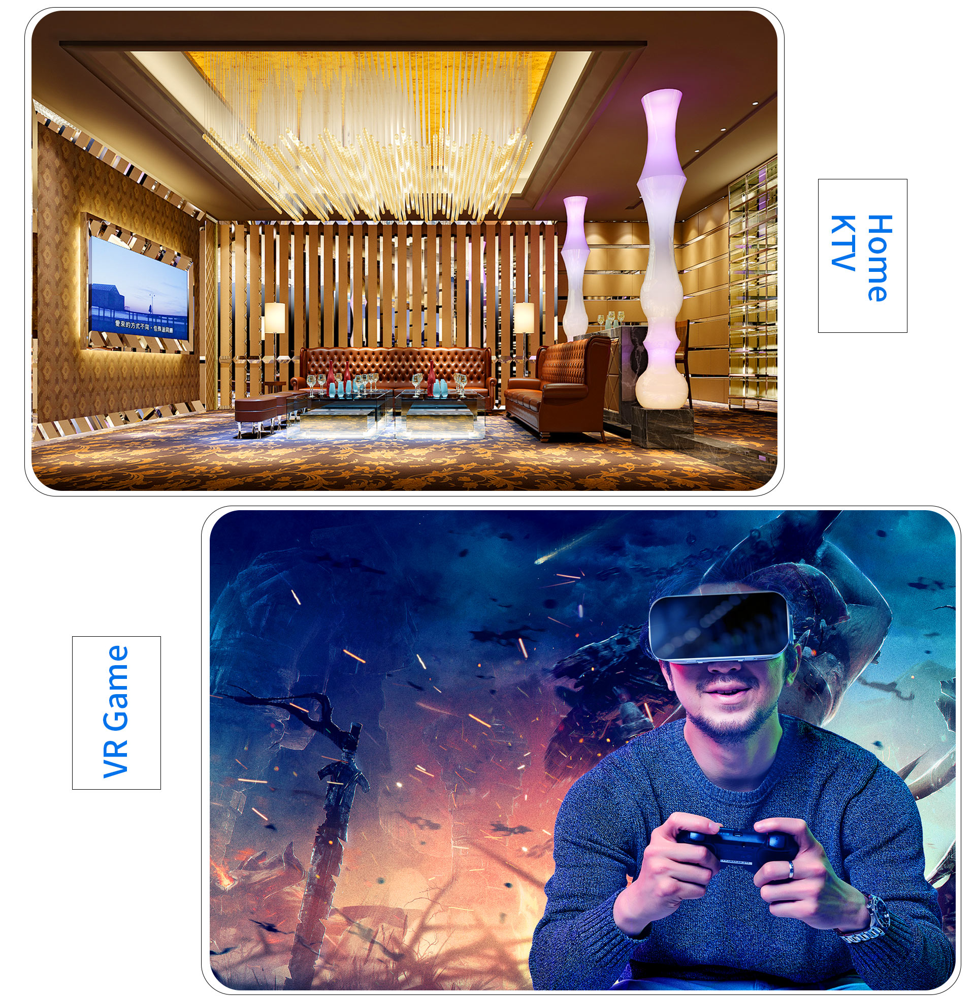 विभिन्न व्यावसायिक कराओके ध्वनि प्रभावों के साथ पूर्व-सेट, एक सर्वव्यापी त्रि-आयामी संगीत स्थान, जो आपको मिनटों में एक व्यक्तिगत संगीत कार्यक्रम का आनंद अनुभव करने की अनुमति देता है।