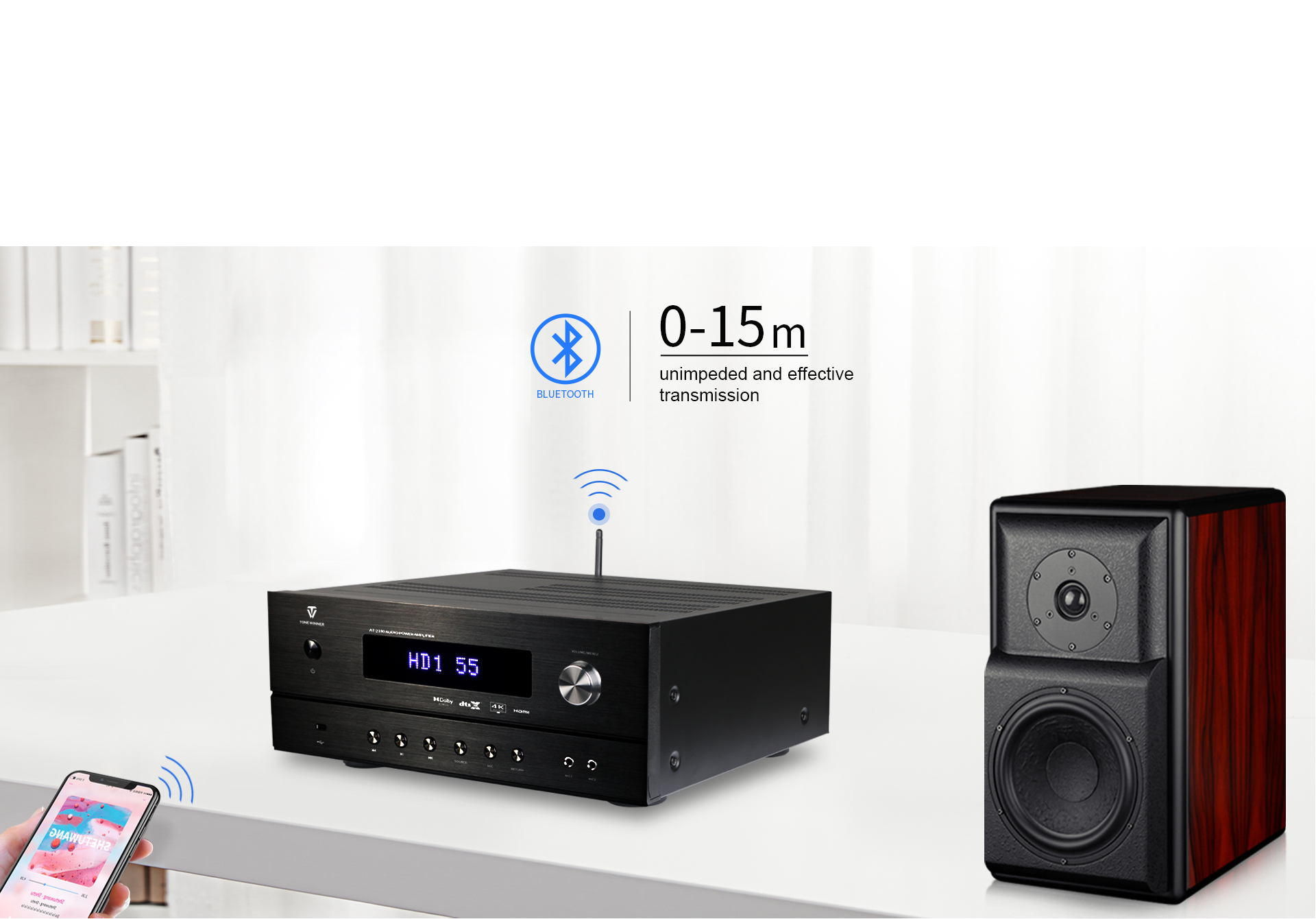 उच्च गति, स्थिर, कम विरूपण, कम बिजली की खपत, और कम विलंबता, 15 मीटर तक की लंबी दूरी के वायरलेस ट्रांसमिशन के साथ।