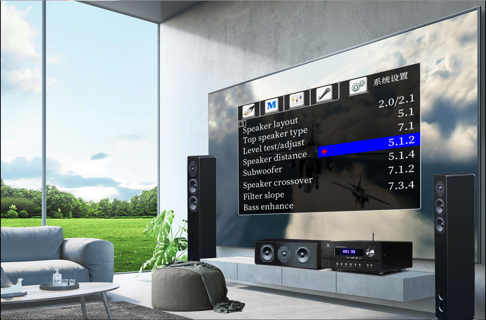 लेआउट कॉन्फ़िगरेशन:2.0 / 2.1 / 5.1 / 7.1/5.1.2 / 5.1.4 / 7.1.2 / 7.3.4