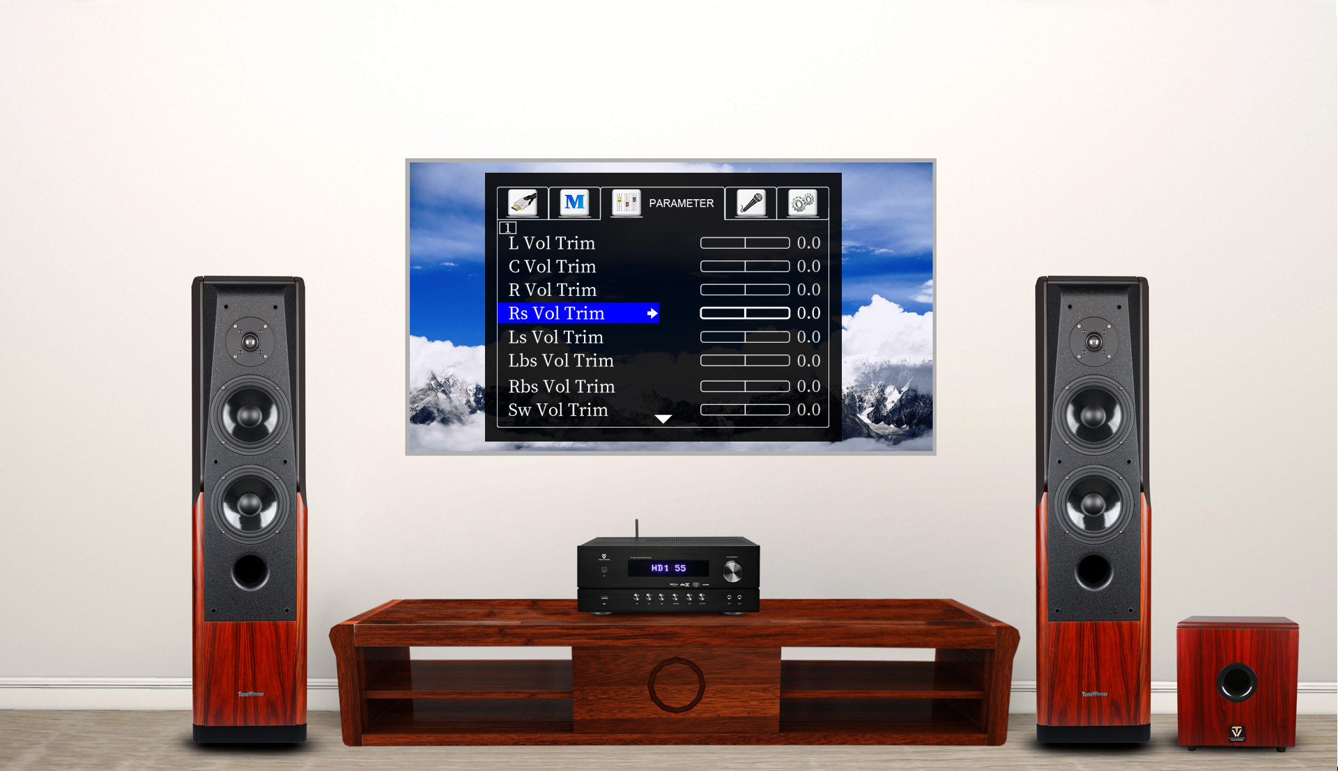 साथ में वे ध्वनि प्रभाव समायोजन, स्पीकर आवृत्ति प्रतिक्रिया वक्र समायोजन, और लय सुधार को पूरा करते हैं ताकि ध्वनि क्षेत्र का पृथक्करण और चारों ओर ध्वनि की निरंतरता सुनिश्चित हो सके। रिसीवर