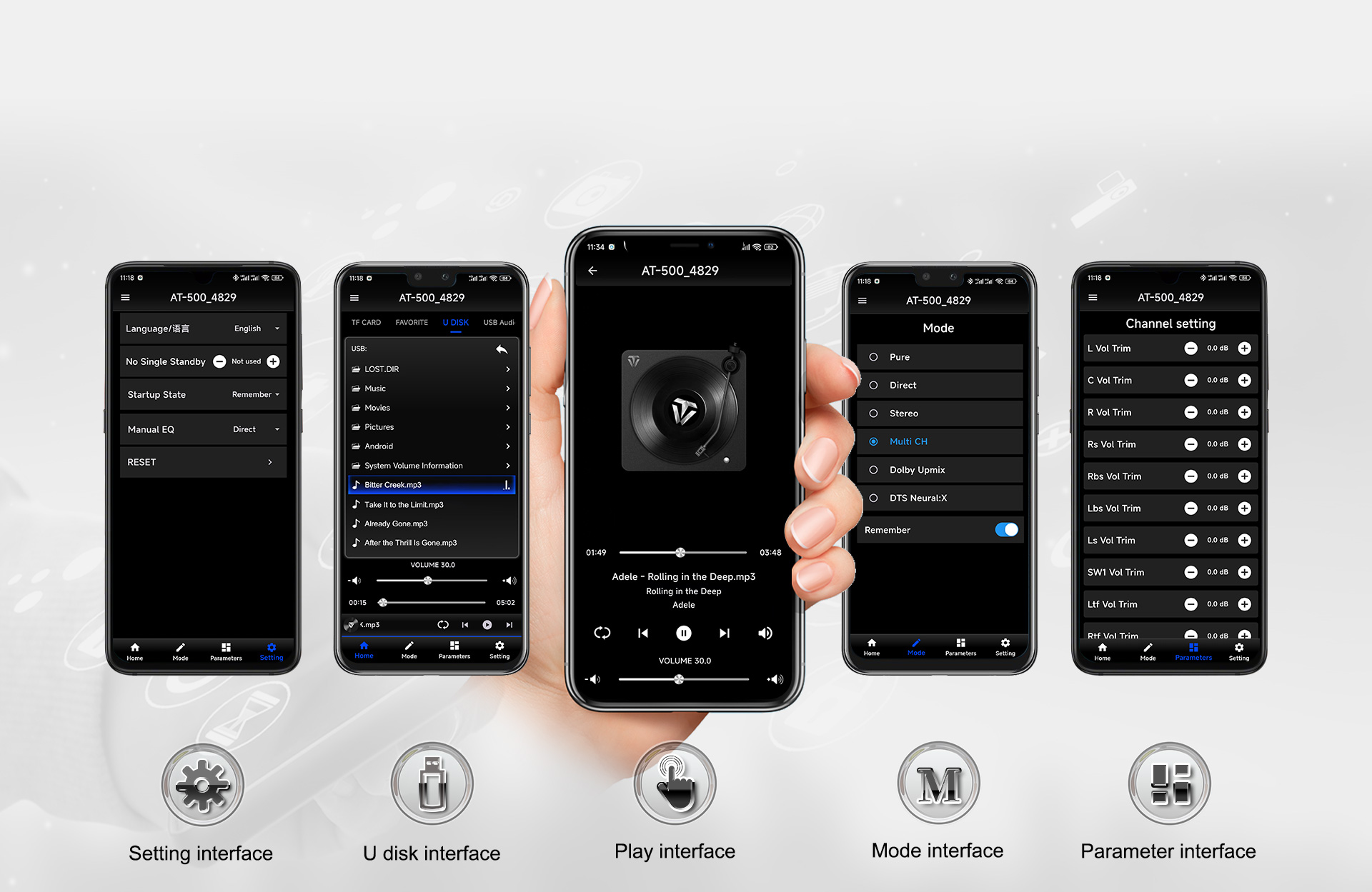 अद्वितीय संगीत प्लेबैक केंद्र और प्रबंधन इंटरफ़ेस 8-लेयर फ़ोल्डर प्रबंधन का समर्थन करता है, और USB डिस्क/TF कार्ड गीत सूची स्पष्ट रूप से प्रदर्शित होती है। आप बिना किसी परेशानी के पैरामीटर समायोजित कर सकते हैं, ऑडियो स्रोत बदल सकते हैं और गीतों का प्रबंधन कर सकते हैं।