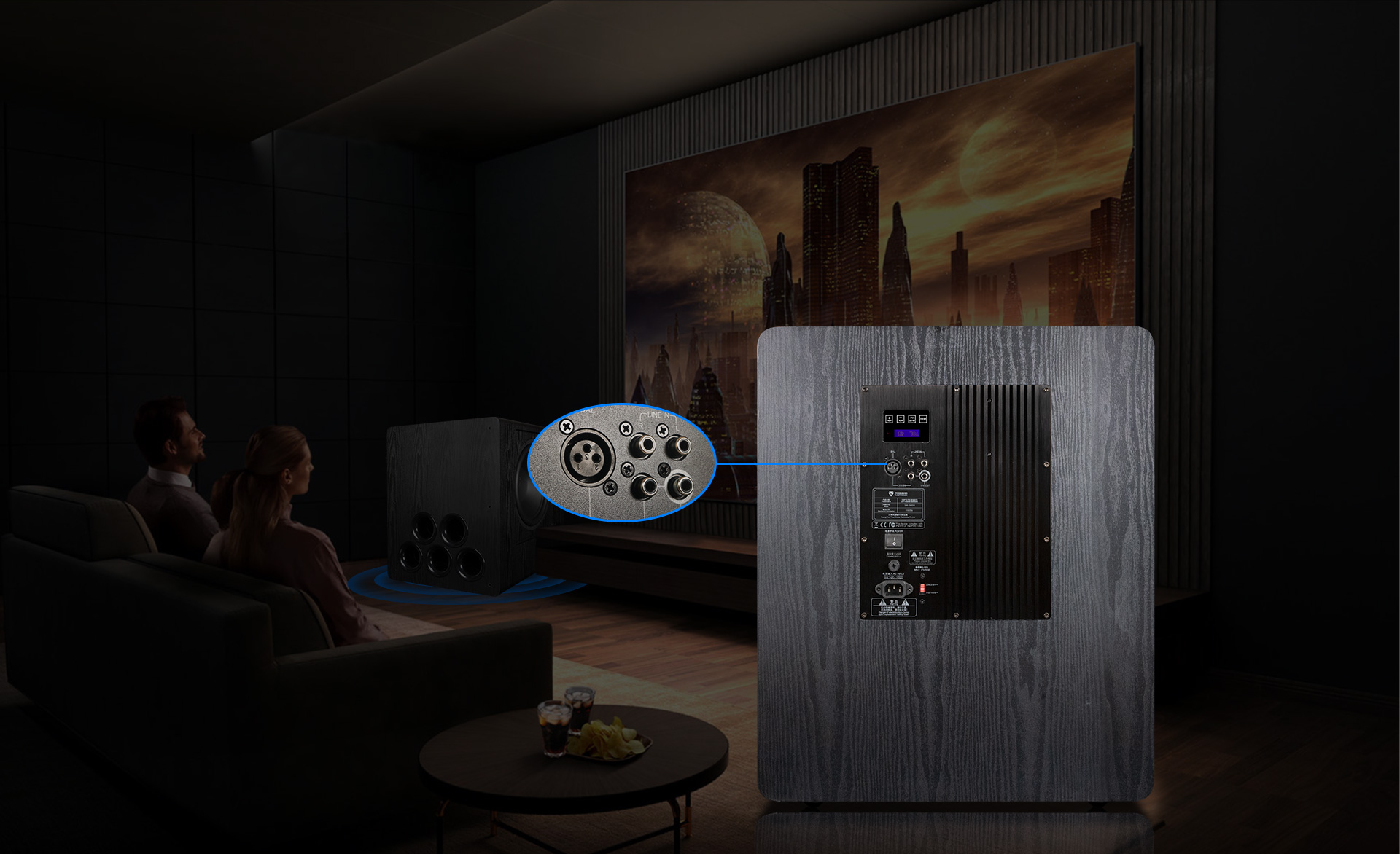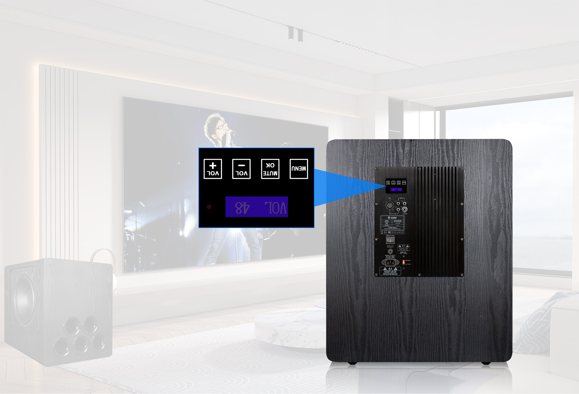 एमडीएफ आवरण उच्च शक्ति बास प्रदर्शन के लिए मजबूत और टिकाऊ है और अधिकांश कमरे के डिजाइन के लिए उपयुक्त है।