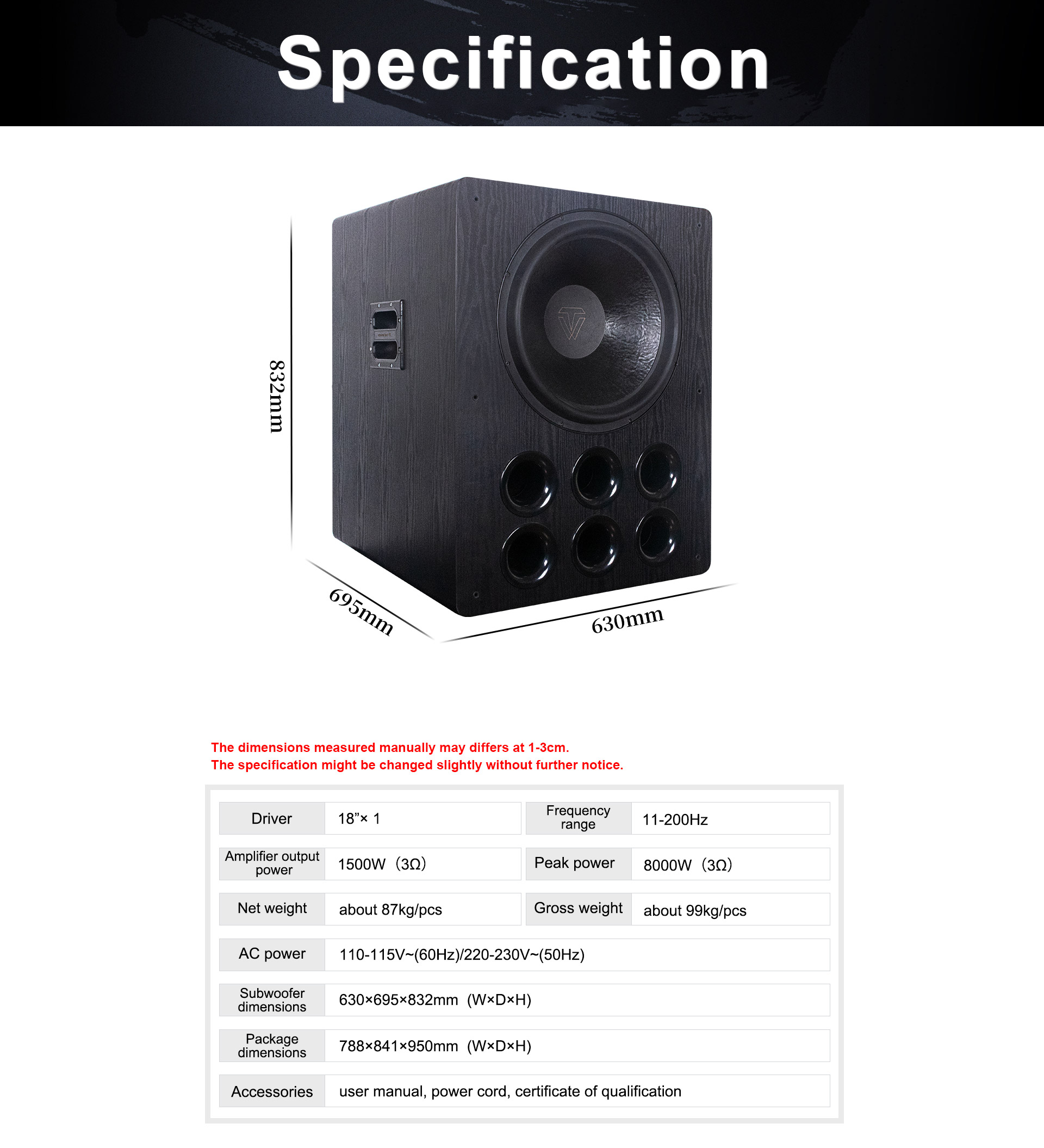 18 इंच कम आवृत्ति ड्राइवर, वजन 22.2 किग्रा