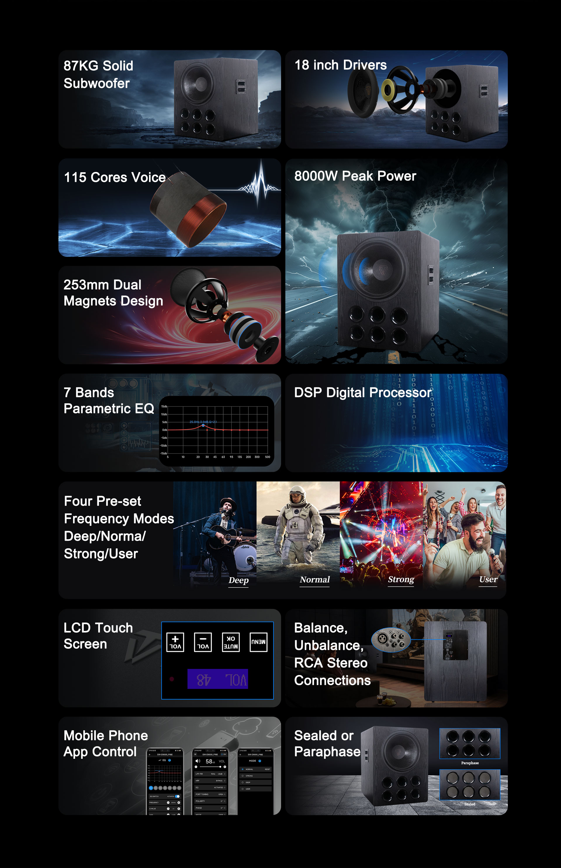 18 इंच डीएसपी एक्टिव पावर्ड सबवूफर