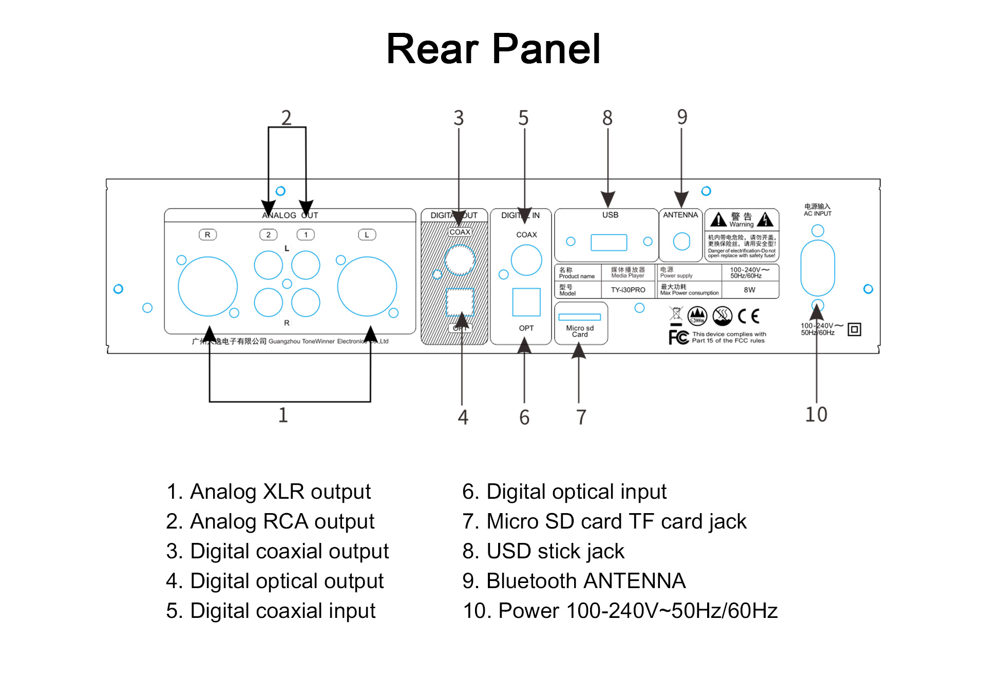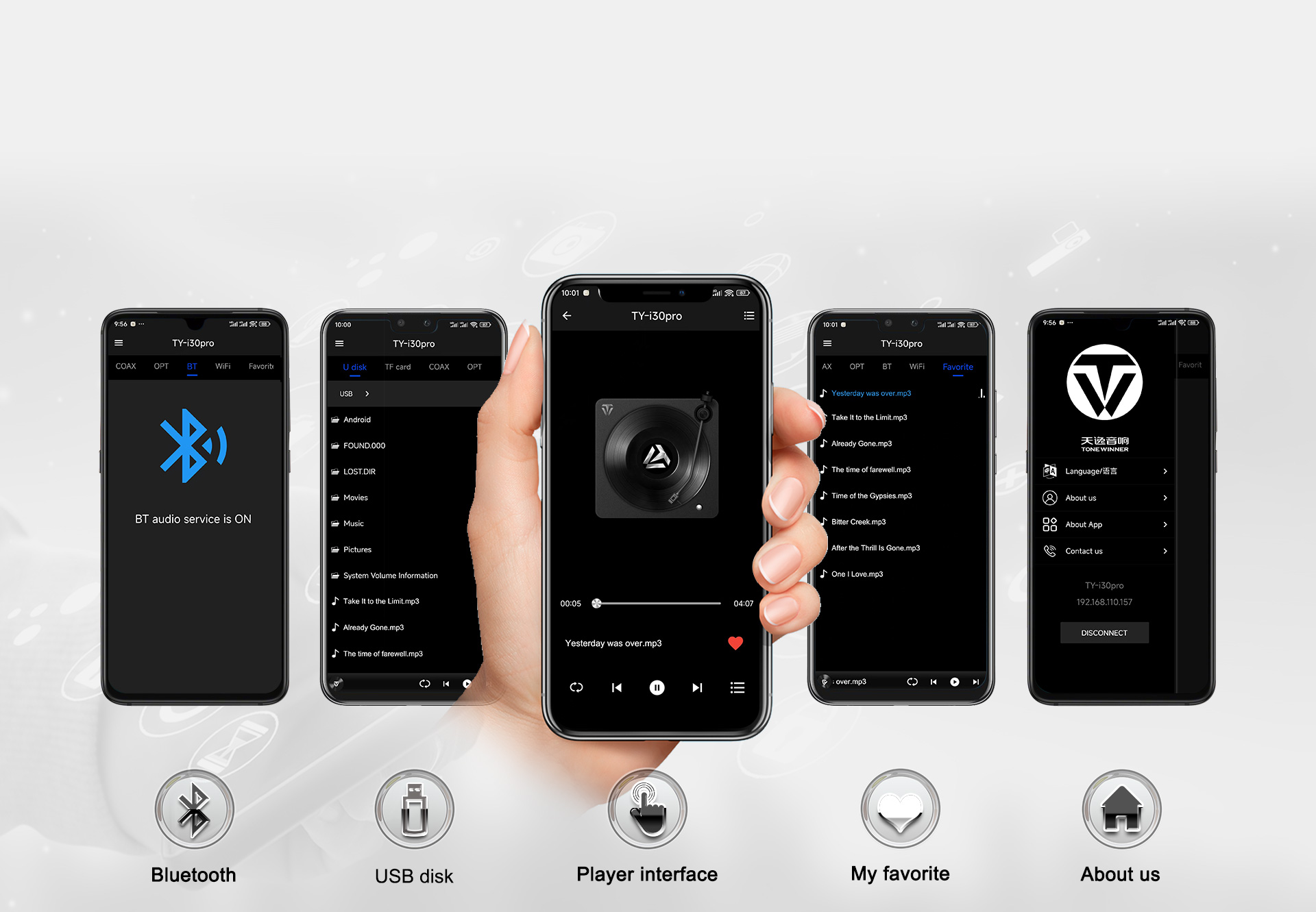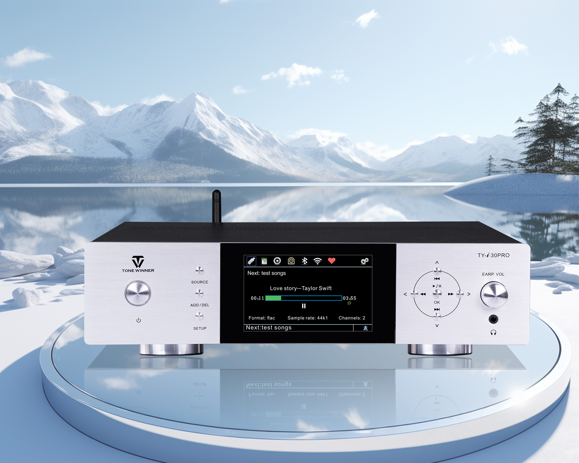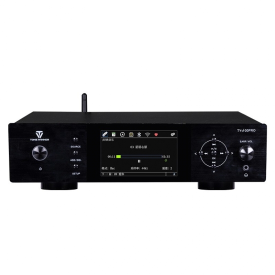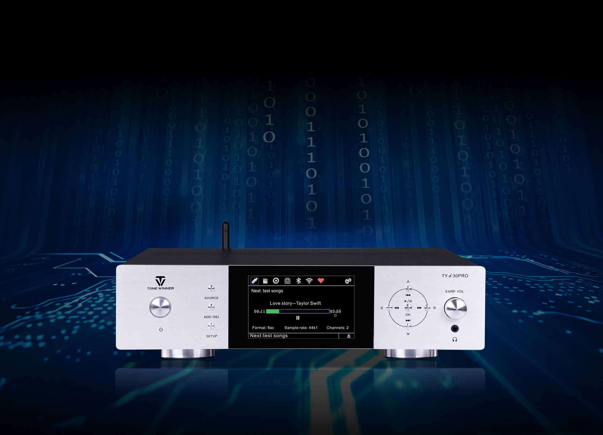 TY-i30PRO, टोनविनर द्वारा लॉन्च किया गया एक नया बहु-कार्यात्मक मीडिया प्लेयर है। यह मोबाइल फ़ोन, आईपैड, नोटबुक और अन्य उपकरणों द्वारा DLNA, AIRPLAY या ब्लूटूथ के माध्यम से चलाए जा रहे गानों को प्राप्त कर सकता है। TY-i30PRO 2TB मोबाइल हार्ड डिस्क, TF कार्ड और USB फ्लैश ड्राइव के लोकल प्लेबैक को सपोर्ट करता है, WAV/FLAC और APE जैसे लॉसलेस म्यूज़िक फ़ॉर्मैट को सपोर्ट करता है, और इसमें आगे की तरफ़ 3.5 मिमी हेडफ़ोन जैक है, और यह ऑप्टिकल, कोएक्सियल, 192kHz/24Bit PCM डिजिटल स्ट्रीम फ़ॉर्मैट इनपुट और आउटपुट को सपोर्ट करता है।