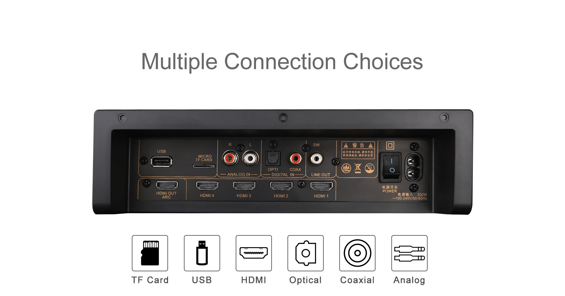 *बहु-कार्यक्षमता: एचडीएमआई, ऑप्टिकल, समाक्षीय, वायरलेस।