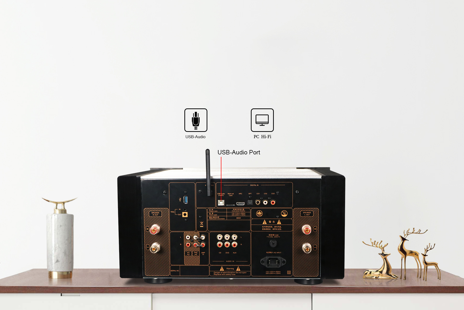विद्युत आपूर्ति, इनपुट, विद्युत भंडारण और बाएं और दाएं प्रवर्धन चैनल के क्षेत्रों को कक्षों में अलग किया गया है, ताकि मुक्त विद्युत चुम्बकीय तरंगों के हस्तक्षेप को कम किया जा सके।